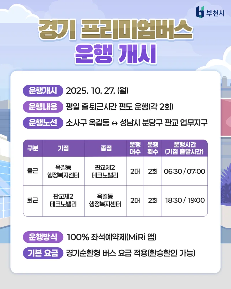 #출퇴근버스 #판교테크노밸리 #부천광역버스 #MiRi앱 #좌석예약버스 #부천시대중교통