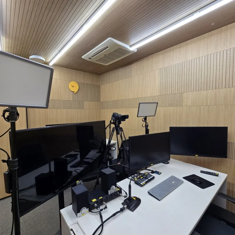 시흥시중앙도서관 ‘e-스튜디오’는 PC, 캠코더, 비디오 캡처 장비, 조명, 마이크, 오디오 인터페이스 등 다양한 장비를 갖추고 있어 고품질 영상 편집과 제작, 유튜브 송출, 웹 업로드까지 가능한 복합 미디어 제작 공간입니다.