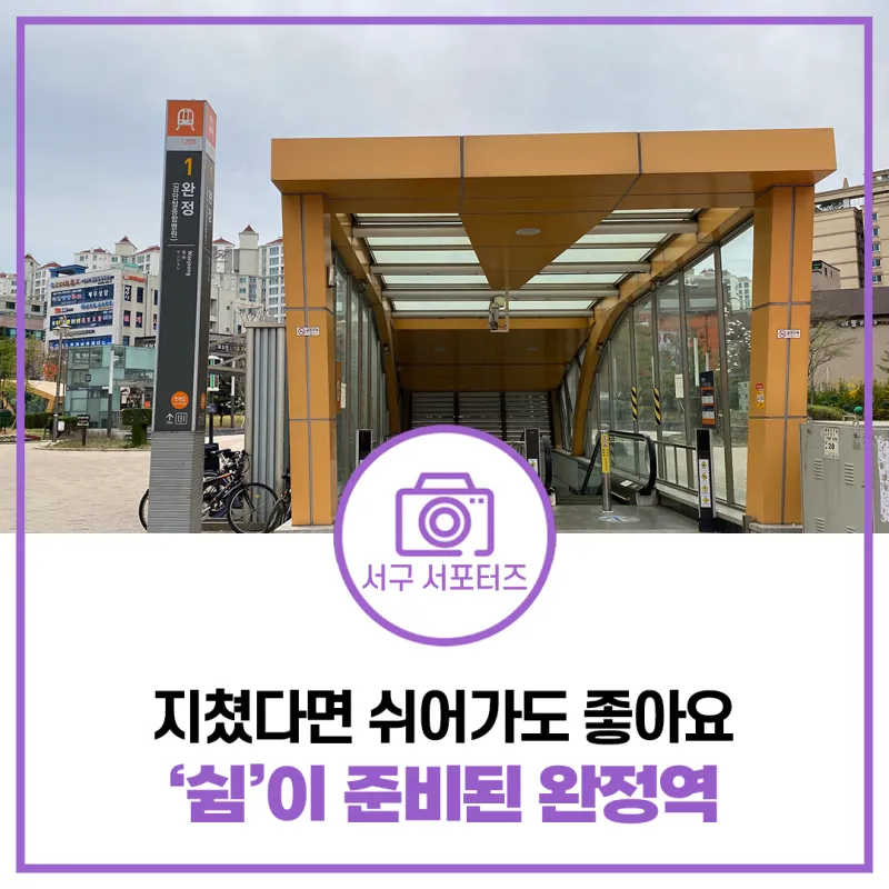 인천지하철 2호선에서 힐링을 담당하는 역, 완정역! 아담하지만, 우리의 바쁜 일상 속 쉼표를 하나 찍어주는 스팟이 아니었나 생각이 드는데요. 이번 주는 완정역에서 여유를 완전 정복(!) 어떠신가요? 아마 일상을 리프레시할 수 있을 거에요. 지금까지 서구민들의 힐링을 책임지는 서구 귀요미 서동이었습니다.