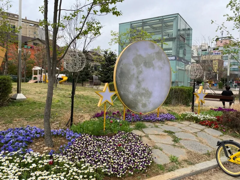 피터팬 조형물과 달 조형물, 꽃 조형물 등 여러 조형물들이 설치되어 있어 구경하는 재미도 있었고 특히 여러 조형물 중 달과 피터팬의 경우는 어두워지면 빛이 들어오는 것 같았어요. 해가 진 후 당하 완정역 광장을 지나가게 된다면 달 조형물에서 사진을 찍어도 좋을 것 같습니다. 달에 비친 실루엣이 인상적인 감성 가득한 사진이 찍힐 것 같아요!