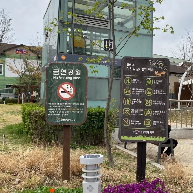 출구 앞 공원에서 힐링 한 스푼
