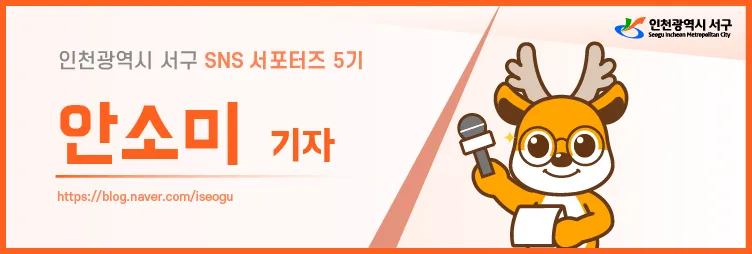 안녕하세요, 서동이에요! 이번 달은 우리 서구 서포터즈 분들과 함께 서구를 이어주는 인천지하철 2호선을 돌아보고 있는데요. 지하철 여행 속에서 우리 서구민들의 일상을 돌아볼 수 있어, 서동이는 너무 즐겁게 보고 있답니다. 그럼 오늘 서구의 일상을 엿볼 수 있는, 인천지하철 2호선 여행은 어디일지! 안소미 기자님과 함께 떠나볼까요?