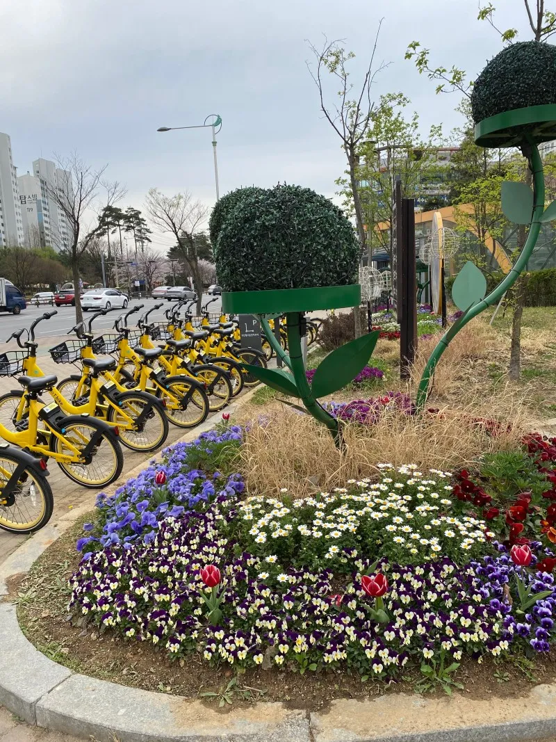 봄을 맞이하여 광장의 이곳 저곳이 꽃으로 꾸며져 있었습니다. 꽃을 보고 있으니 봄이 왔다는 사실이 더욱 와닿는 것 같아요. 여러분도 완정역에 오신다면 예쁜 꽃으로 힐링하고 가보세요! 하루가 산뜻해질 거에요~