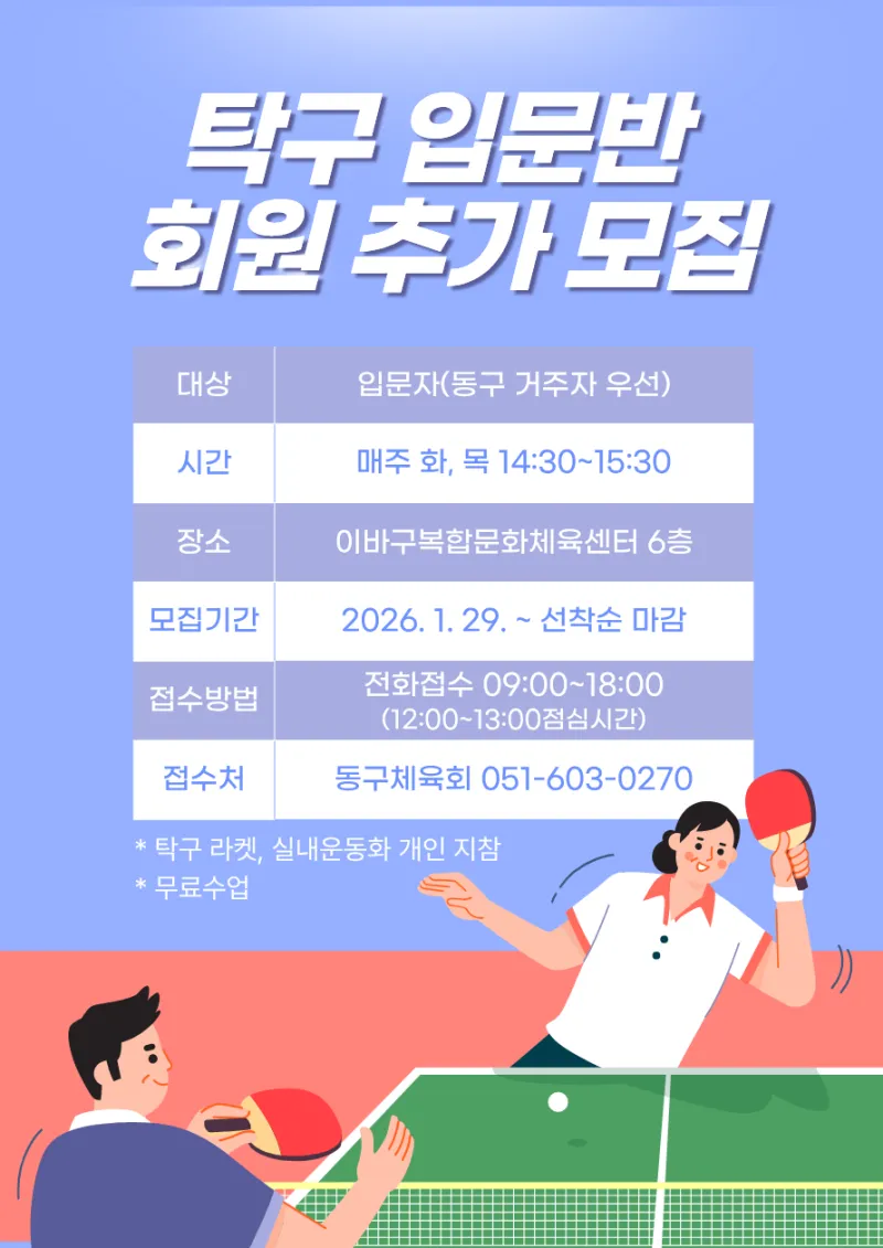 ✅ 대상 : 탁구 입문자(동구 거주자 우선)