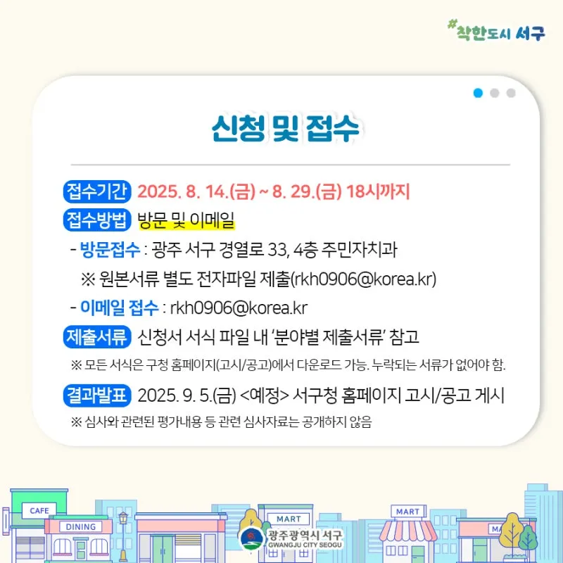 ✔️ 결과발표 : 2025. 9. 5.(금) <예정> 서구청 홈페이지 고시/공고 게시