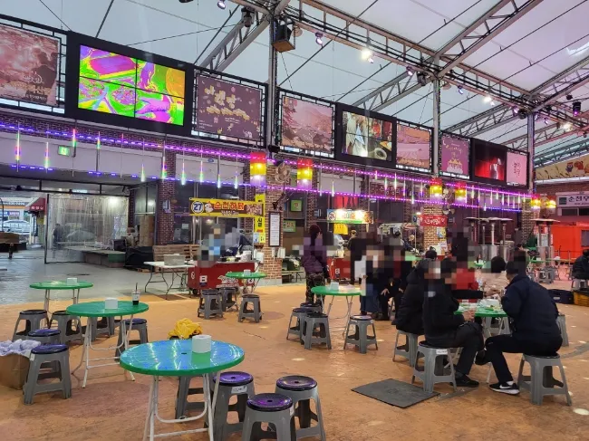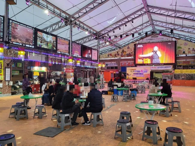앞에 이렇게 큰 무대가 있구요! 사방으로 모두 푸드포차, 음식점이 늘어져있어요!