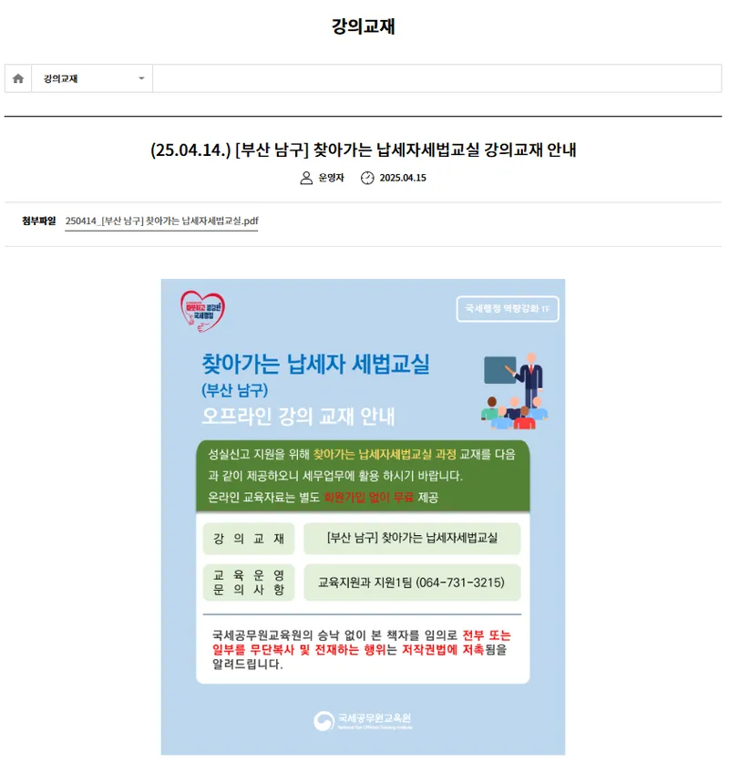 납세자세법교실 누리집 -> 강의교재 게시판에서
