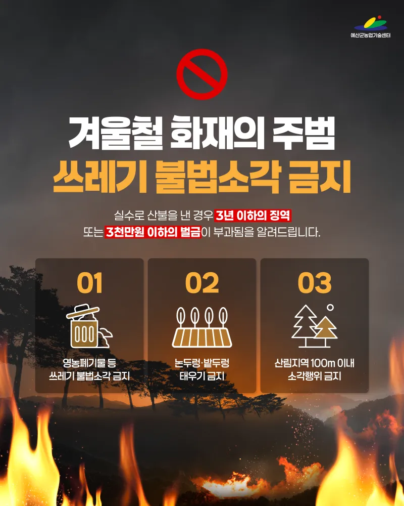 🚨겨울철 화재의 주범🚨 쓰레기 불법소각 금지