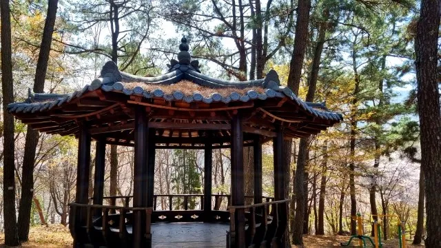 1.5층 휴게 누각에서 바라본 풍경입니다. 모충공원을 방문한다면