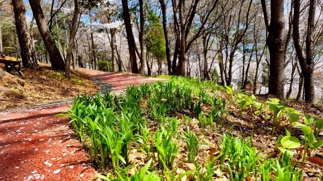 벚꽃잎이 흩날리는 공원길에는 연두빛 새싹이 돋아납니다. 맥문동이 피어날까요? 비비추과 식물이 피어날까요?