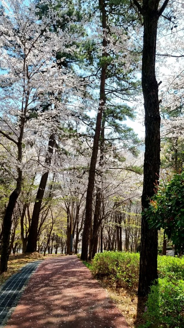 햇살 가득 받고 자라나 일찍 개화한 벚꽃잎은 봄바람타고 떨어져 연분홍 꽃길을 만들어줍니다.