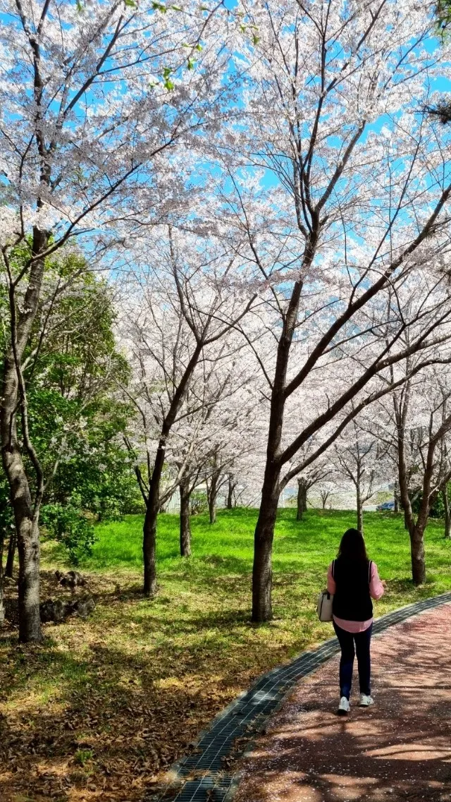 복잡함과 시끌거림이 싫다면, 한적하고 편안하게 거닐어볼 수 있는 사천의 숨은 벚꽃맛길, 모충공원 어떠세요??