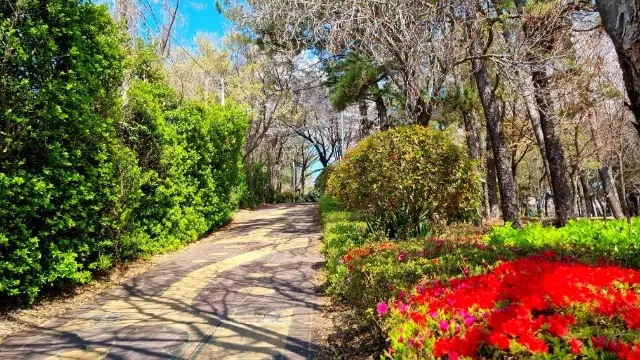 모충공원은 작은 언덕같은 자연 지형에 조성된 공원으로 직선아닌 곡선의 공원길이 아니여서 더 운치를 더해줍니다.