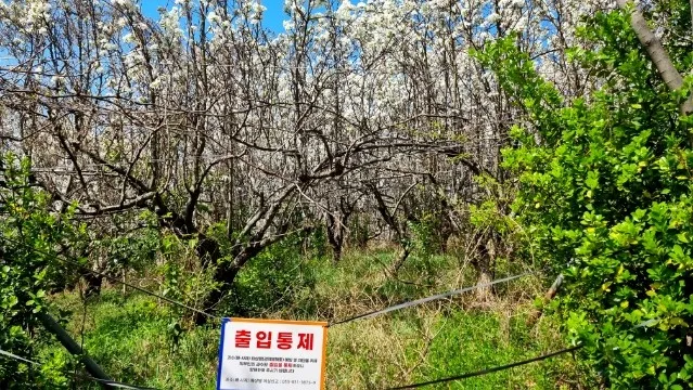 이 곳은 개인이 가꾸는 사과, 배밭으로 출입을 통제하므로 들어가지 않도록 당부드립니다.