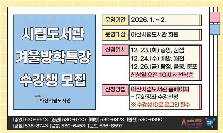 신청방법 : 아산시립도서관 홈페이지