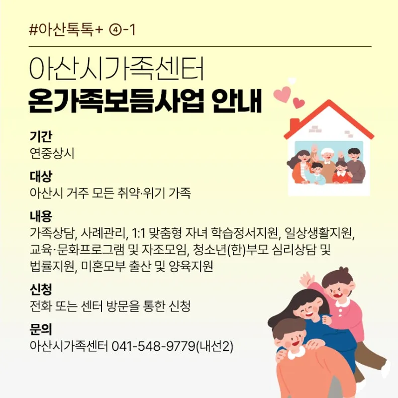 아산시가족센터 온가족보듬사업 안내