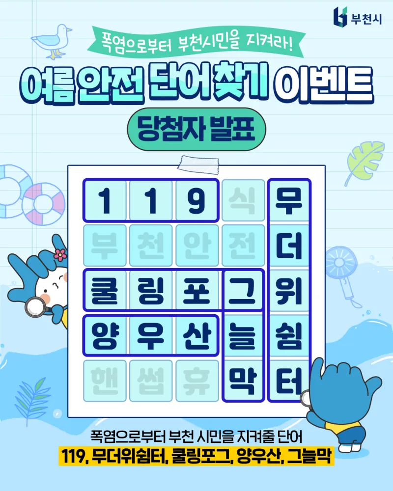 [EVENT]부천시 여름 안전 단어 찾기 이벤트 당첨자 발표!