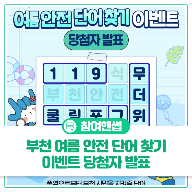 🎊 부천시 여름 안전 단어 찾기 이벤트 당첨자 발표! 🎊