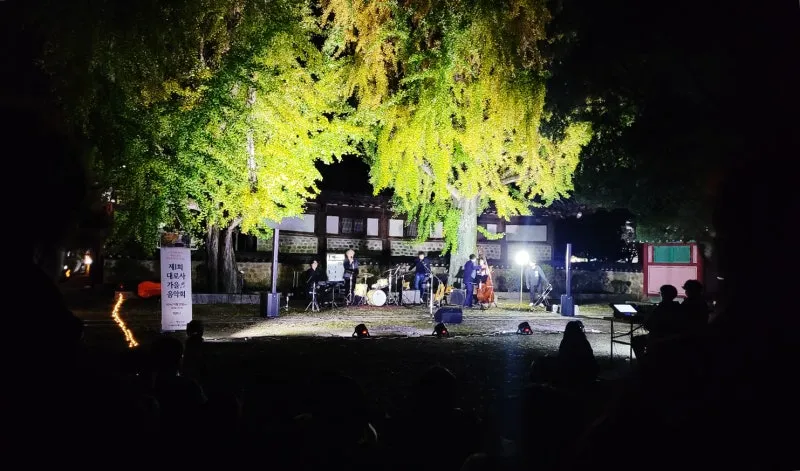 노란 은행나무와 대로사 한옥, 여강과 재즈의 앙상블… ‘제1회 대로사 가을 음악회’ 열려