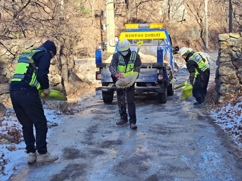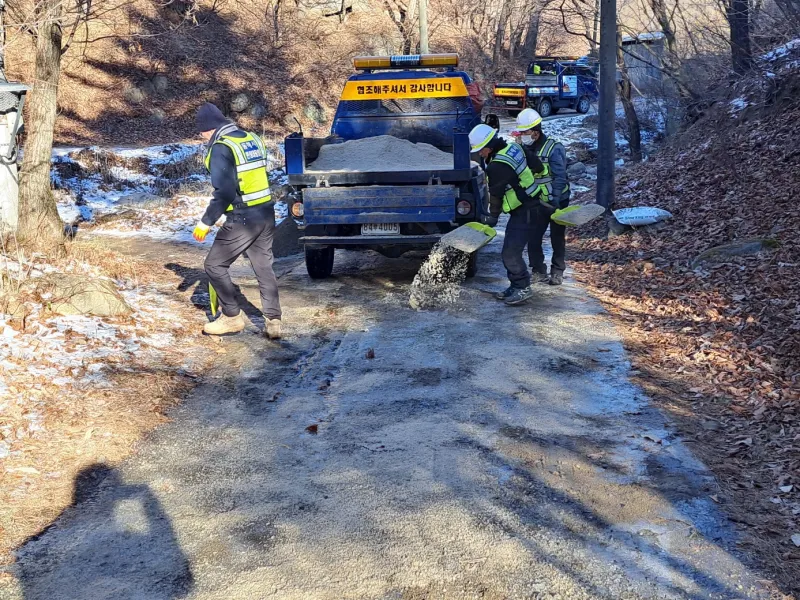 동절기 사고예방을 위해 제설·제빙작업에 철저히 임하여 시설물 안전을 도모하였습니다.😍