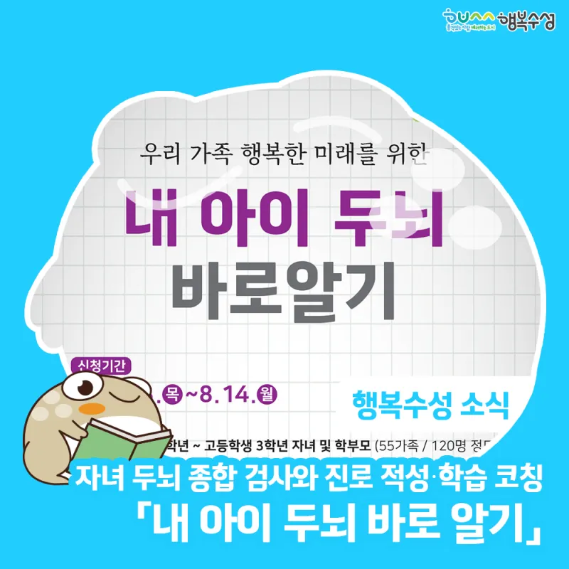 자녀 두뇌 종합 검사와 진로 적성‧학습 코칭을 제공하는 「내 아이 두뇌 바로 알기」 프로그램 참여 안내