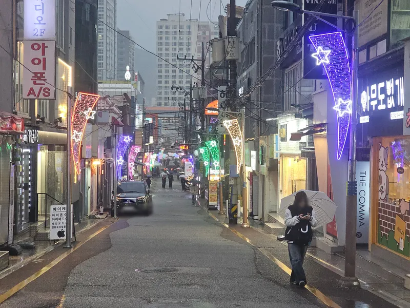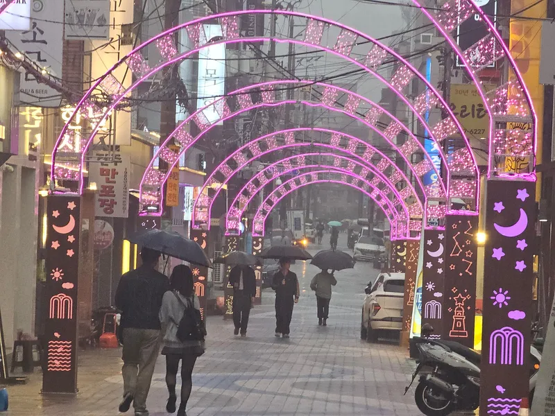 지난 10월 29일부터 2026년 1월 18일까지 진행되는 부산대학로 빛거리는, 부산도시철도 부산대역 1번출구 앞에서 부산대학로 49번길에서 50번길 사이에 조성되었는데 무려 634cm의 길이라고 합니다. 화려하게 빛나는 빛조명들은 부산대학로를 더욱 빛나게 할 뿐아니라 활기찬 부산대학로의 분위기를 더욱 업그레이드 시켜주는 것 같았습니다.