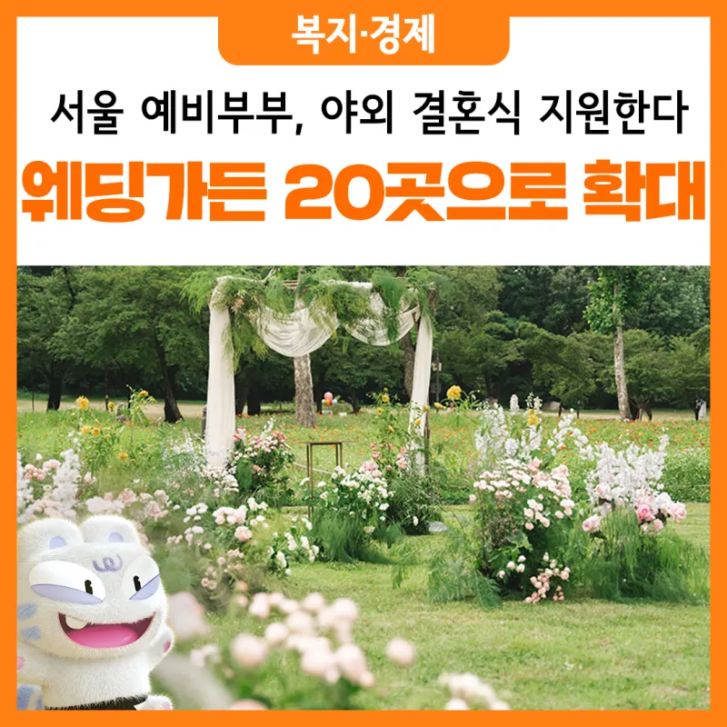 서울시는 결혼식 예약난을 해소하고, 개성있고 의미있는 결혼식을 종합적으로 지원하여 건강한 결혼식 문화를 조성하고자 공공예식장을 운영한다. 최근 웨딩 트렌드 변화로 도심 속 야외 결혼식 수요가 증가함에 따라, 자연 속에서 특별한 친환경 결혼식을 올릴 수 있는 웨딩가든을 조성한다. 기존 9개소에서 총 20개소로 확대 운영할 계획이다.