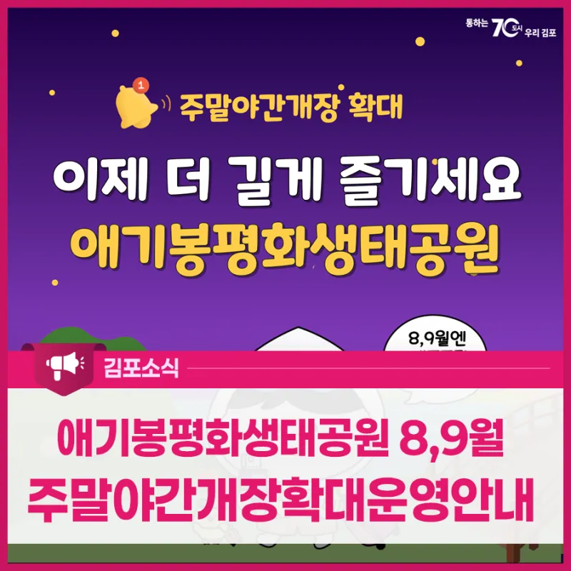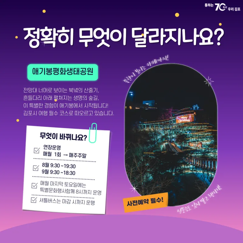 애기봉평화생태공원 8,9월 주말 야간개장 확대운영 안내