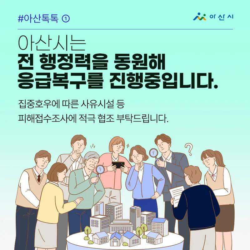 집중호우에 따른 사유시설 등 피해접수조사에 적극 협조 부탁드립니다.