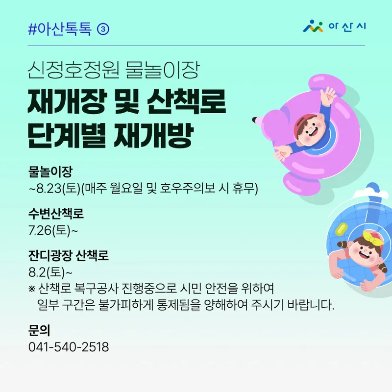 신정호정원 물놀이장 재개장 및 산책로 단계별 재개방