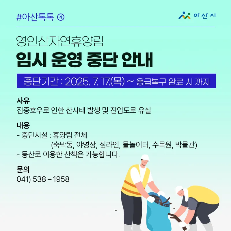 🌳 영인산자연휴양림, 임시 운영 중단 안내
