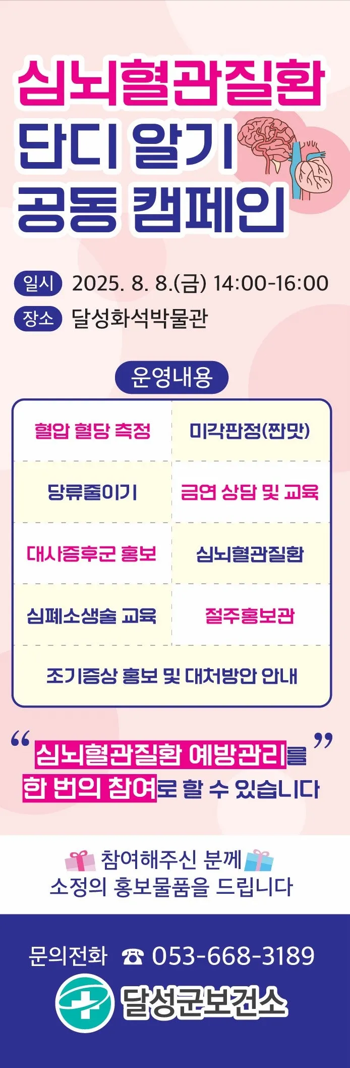 달성군보건소가 유가읍 달성화석박물관에서 '심뇌혈관질환 단디 알기 공동 캠페인'을 개최합니다✨