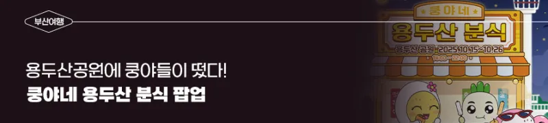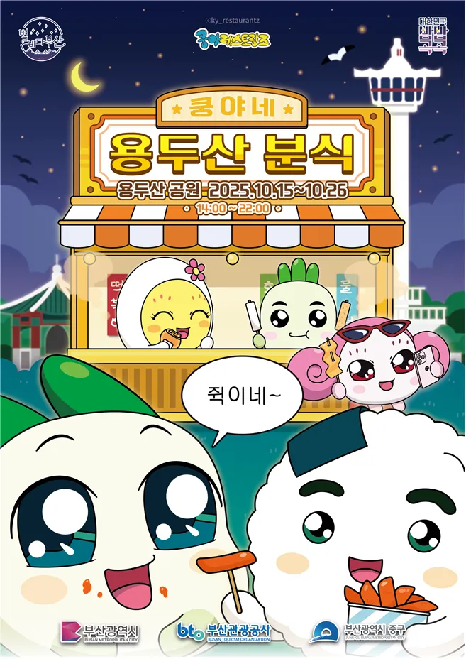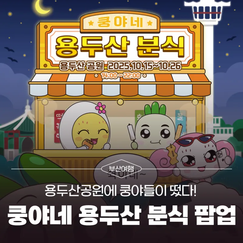 부산시와 부산관광공사가 용두산공원에서 「별바다부산 나이트 팝업 시즌3」로 '쿵야네 용두산 분식 팝업'을 운영합니다.