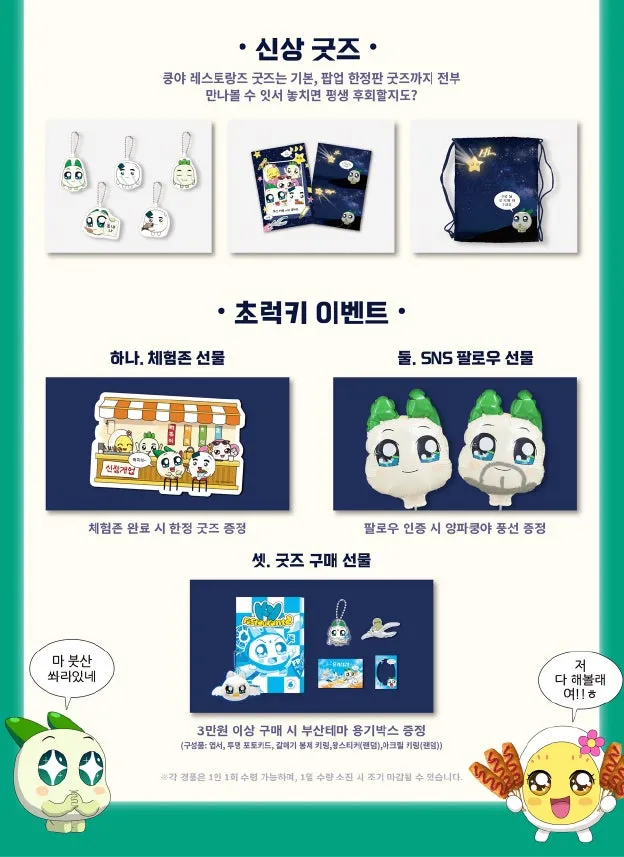 쿵야 레스토랑즈 기본 팬 상품(굿즈)과 함께 이번 팝업 한정판 상품을 구매할 수 있어요!