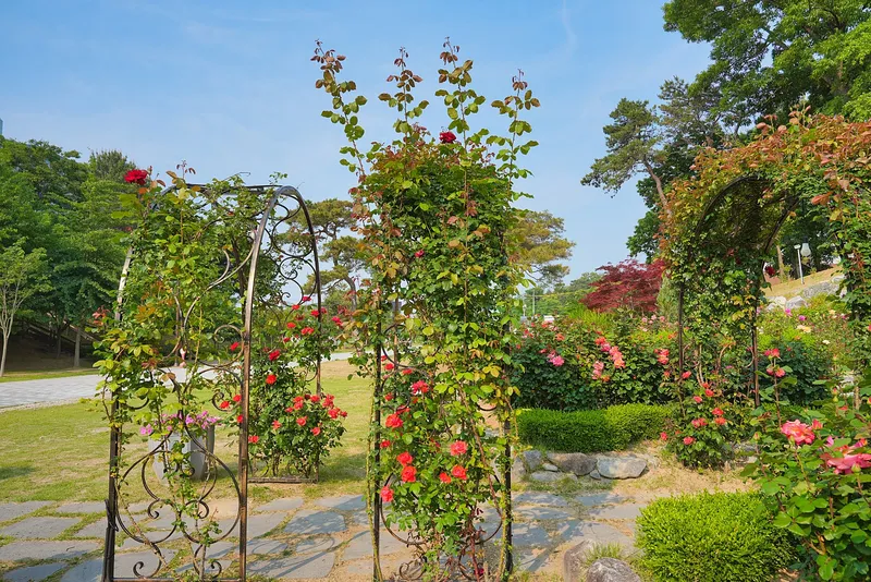 작은 아치 구조물 아래 장미가 흐드러지게 피어 있어 사진만 찍어도 그림처럼 나오는 장소입니다.