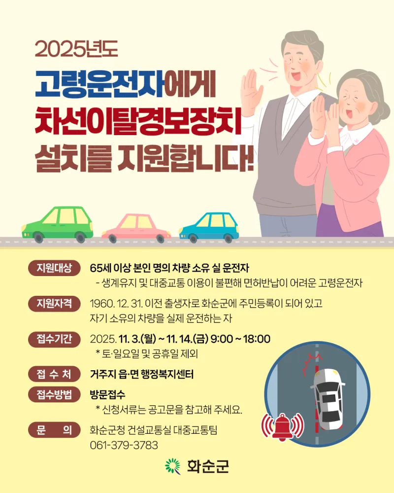 2025년도 고령운전자에게 차선이탈경보장치 설치를 지원합니다!