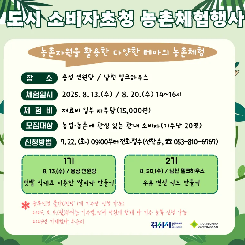 ▪️ 7월 22일(화) 09:00부터 전화접수 (선착순, ☎053-810-6767)