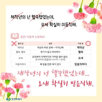 #창원 #창원시 #창원특례시 #창원국가산단 #국가산단50주년 #50주년기념행사 #바로잡는우리말 #우리말바로잡기 #헷갈리는단어 #맞춤법