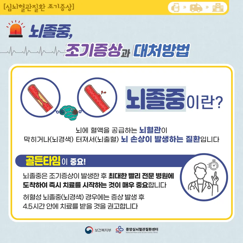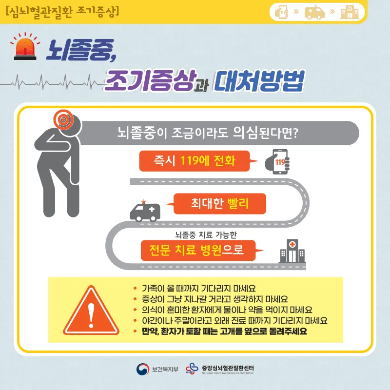 심근경색과 뇌졸중은 조기증상을 미리 알아두는 것이 매우 중요합니다.