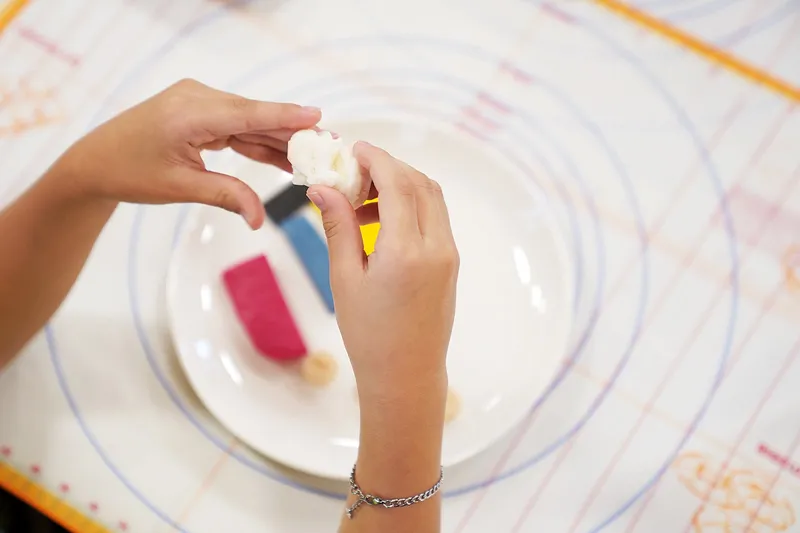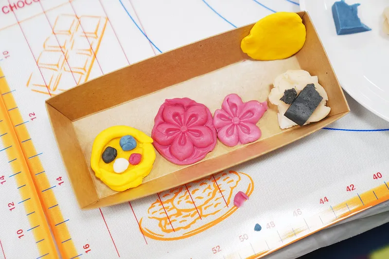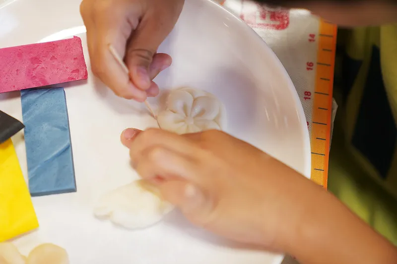 곱게 색을 입힌 떡 반죽으로 꽃 모양도 만들고, 떡 도장으로 모양을 찍은 후 만두처럼 빚은 송편도 꽤 멋스러웠습니다. 👏
