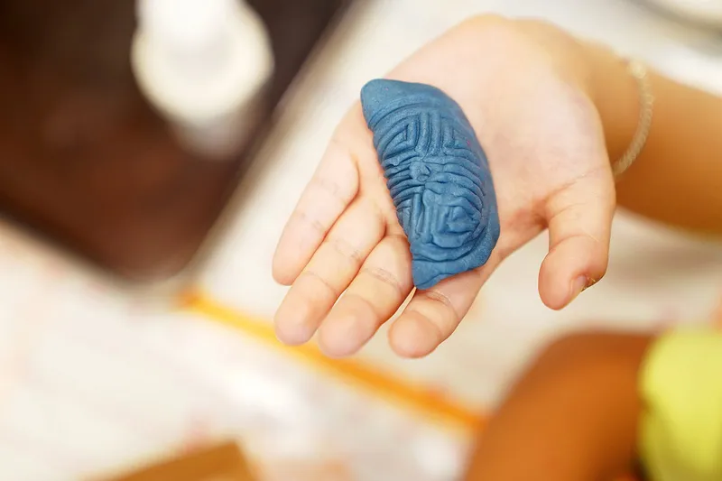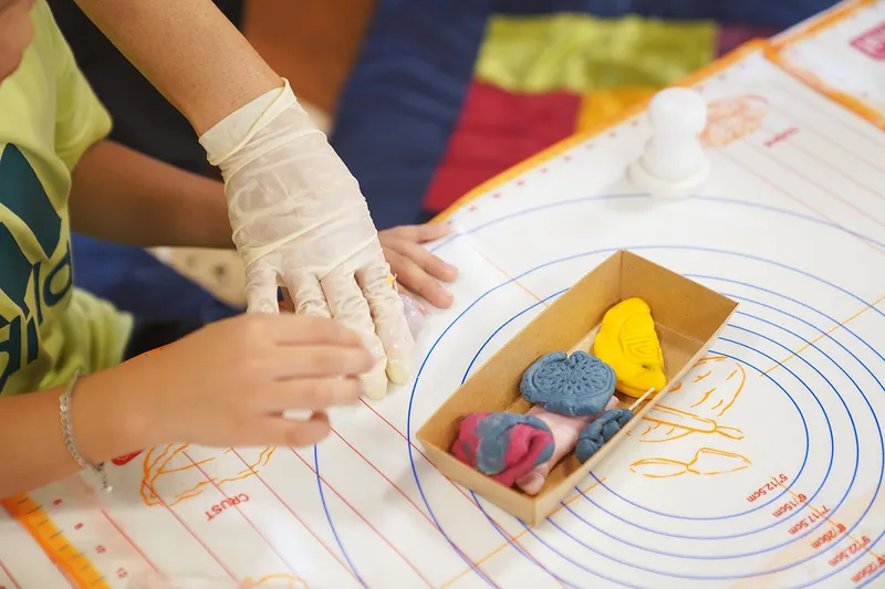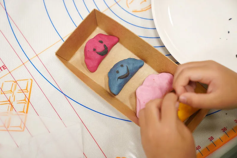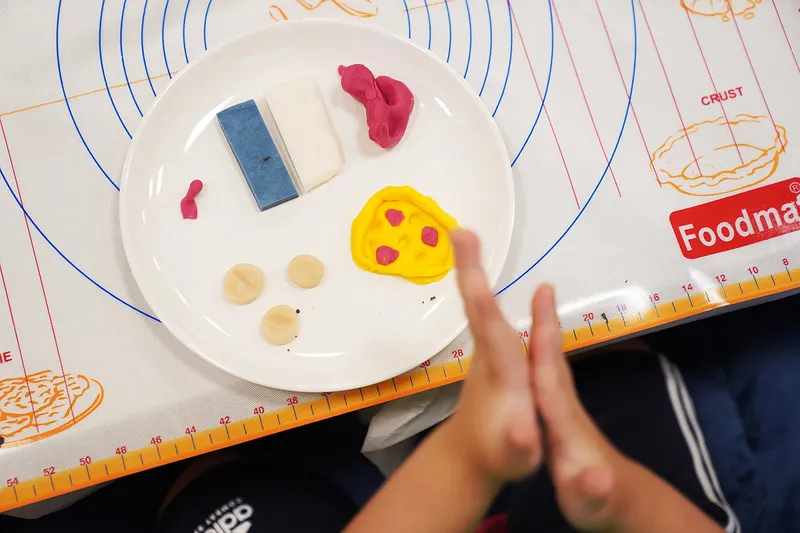 먼저 선생님이 송편을 빚는 방법을 시범으로 보여주셨고, 그 후 아이들이 색색깔의 떡 반죽을 조물조물 주물러 송편을 빚기 시작했습니다.