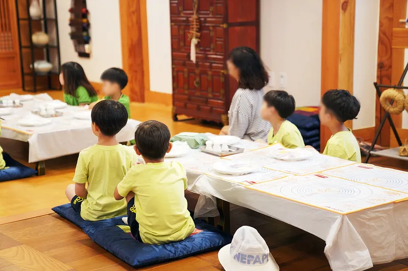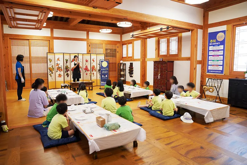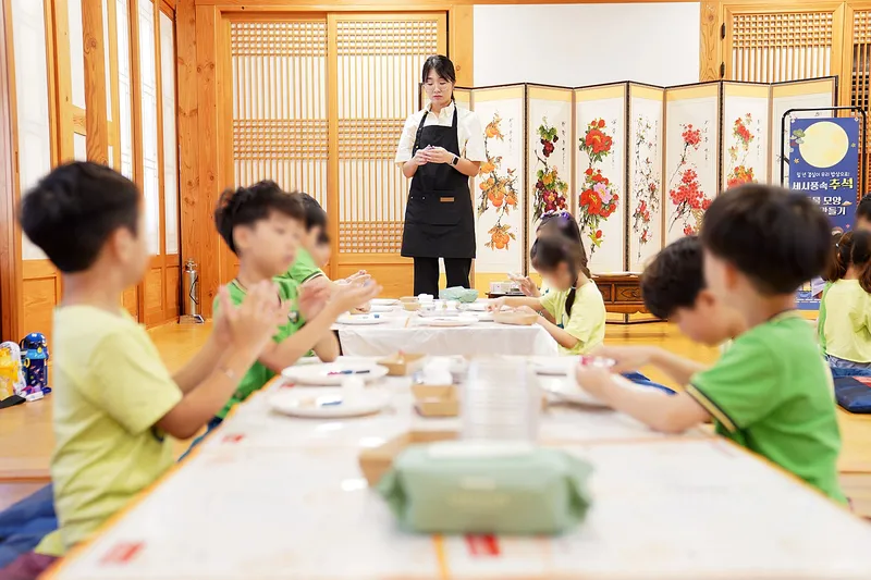 🧒 꼬물꼬물 어린이 친구들이 인희재에 옹기종기 모여 귀를 쫑긋 세우고 추석에 대한 설명을 집중해서 들었습니다.