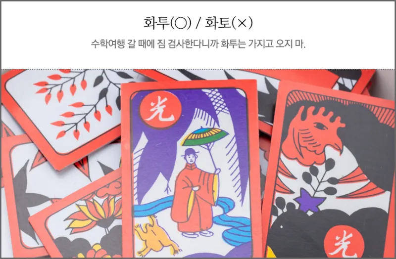 수학여행 갈 때에 짐 검사한다니까 화투는 가지고 오지 마.