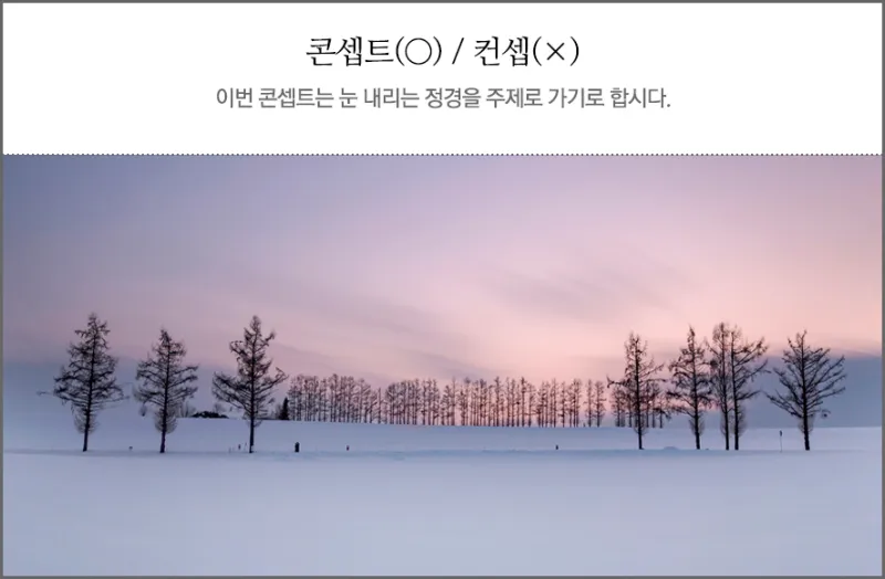 이번 콘셉트는 눈 내리는 정경을 주제로 가기로 합시다.