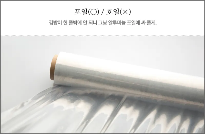 김밥이 한 줄밖에 안 되니 그냥 알루미늄 포일에 싸 줄게.