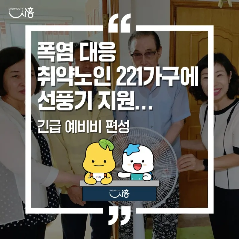 시흥시는 지난 9일 관내 19개 동 독거노인 221가구에 직접 선풍기를 지급했습니다.