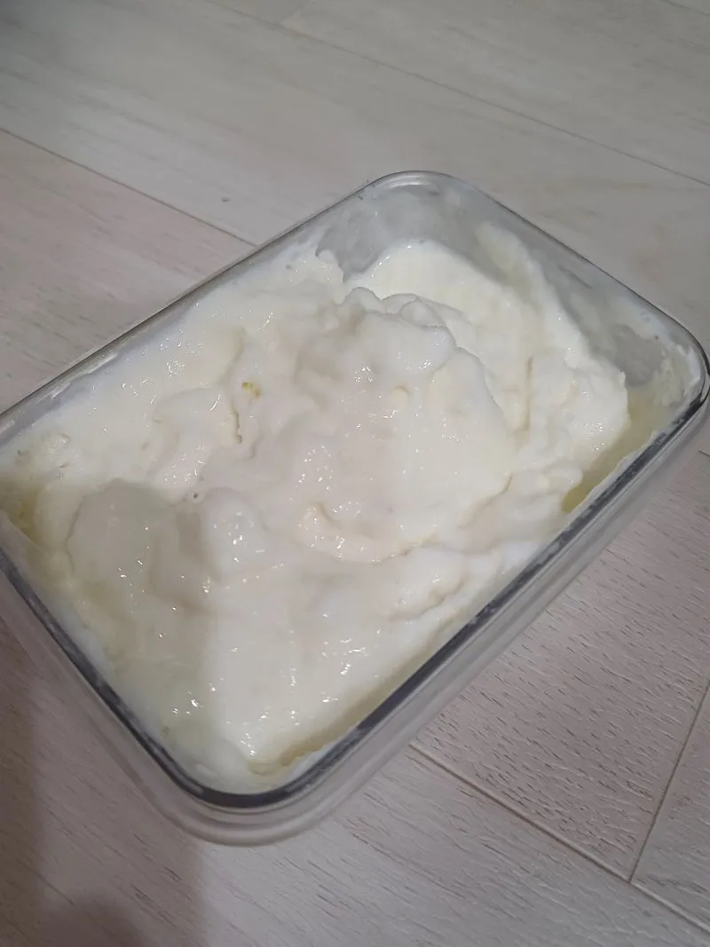 이 과정을 3~4회 반복하면 부드러운 아이스크림이 완성됩니다.