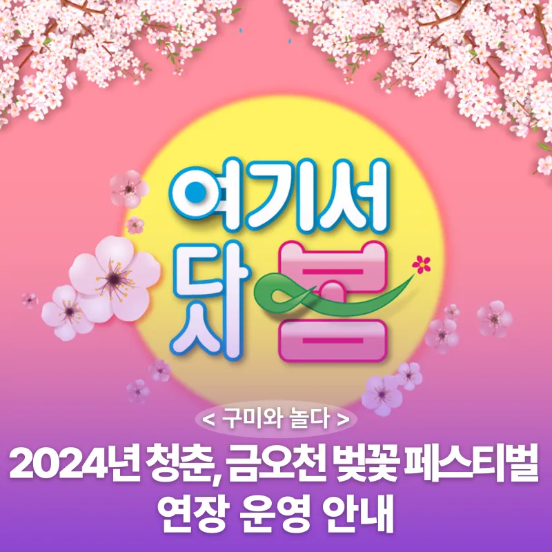 2024년 청춘, 금오천 벚꽃 페스티벌 연장 운영을 안내해 드립니다 ~! 🌸🌸🌸