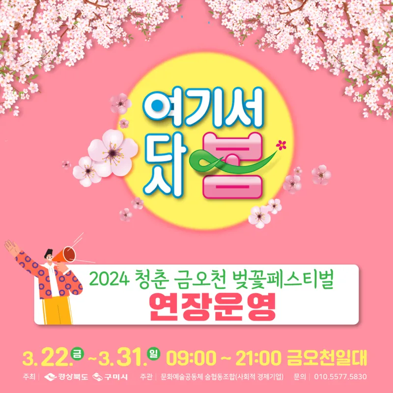 2024년 청춘, 금오천 벚꽃 페스티벌 연장 운영 안내