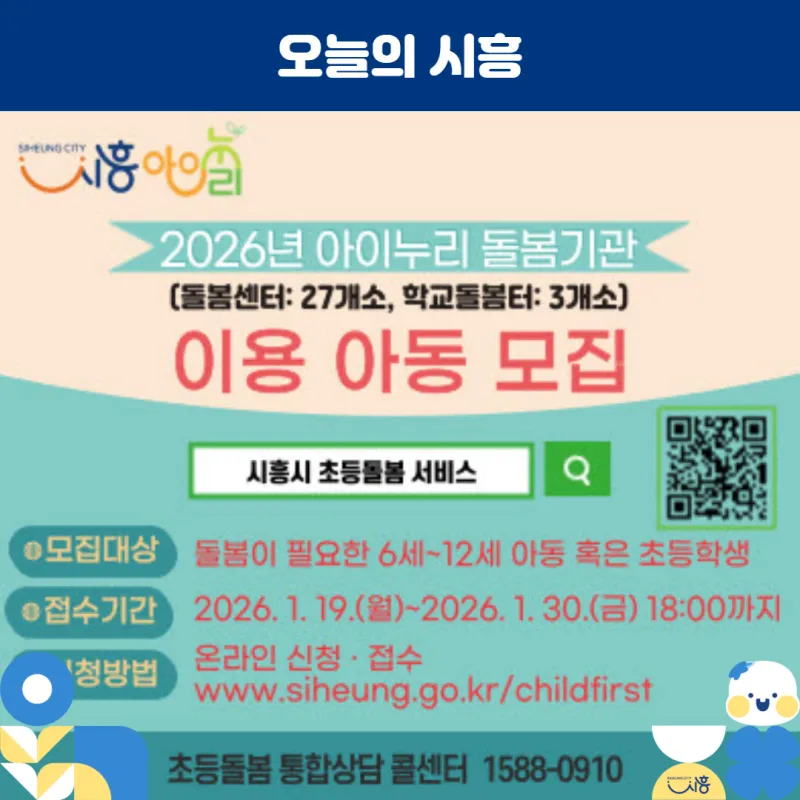 2026년 아이누리 돌봄기관 이용 아동 모집 안내